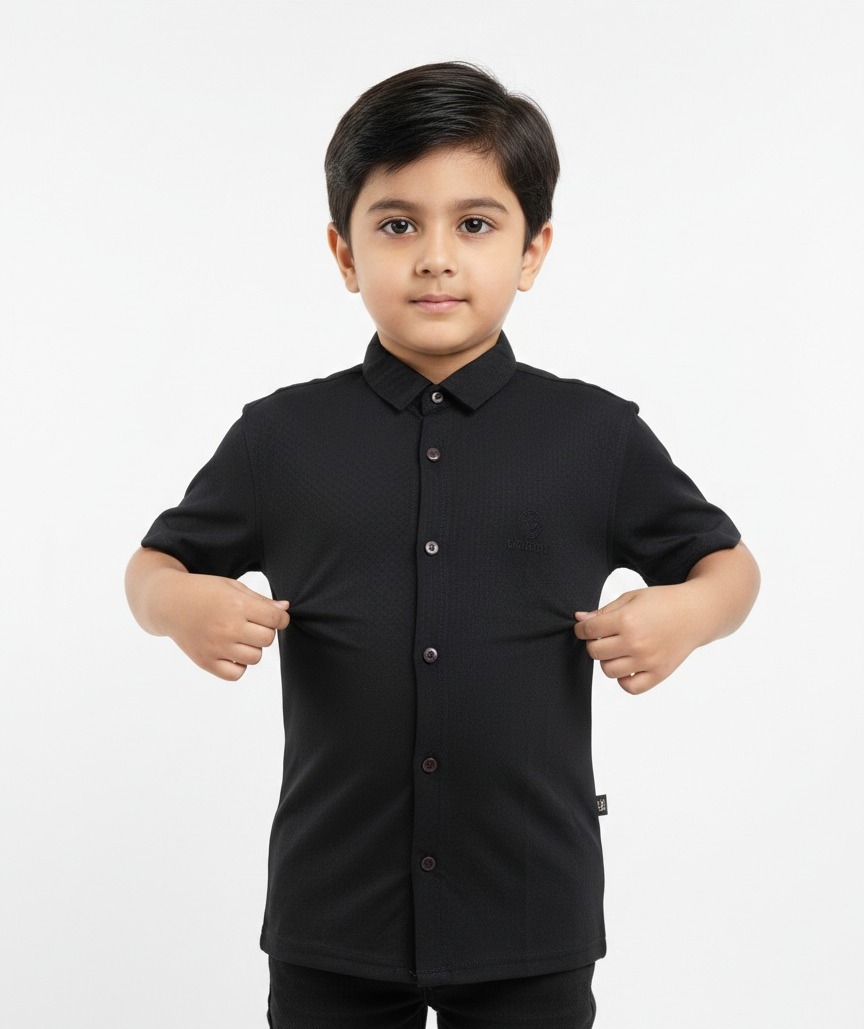 Essential Onyx Stretch Shirt by Eterno Apparels, where sophisticated minimalism meets modern performance. This shirt is meticulously crafted from a premium, high-elasticity fabric designed to provide a sharp, tailored silhouette while allowing for unrestricted movement. The deep matte black finish offers a versatile look suitable for formal events or elevated casual wear. Unlike standard cotton, our specialized stretch material remains smooth and resistant to wrinkles, ensuring a professional, “fresh-pressed” appearance from morning to night. Featuring a clean-cut collar, matching onyx buttons, and a subtle embroidered logo on the chest, this shirt is the ultimate wardrobe staple for the young gentleman who values both comfort and class.
